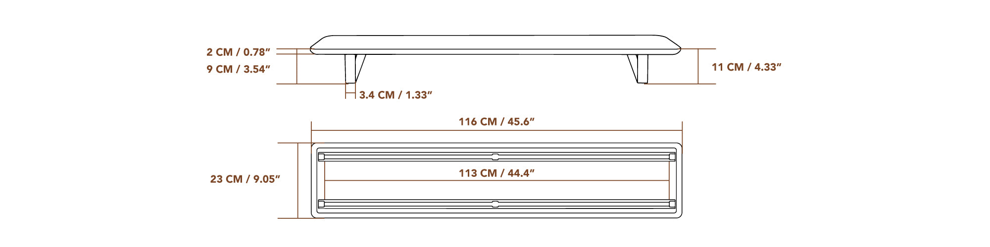 一般桌板在螢幕的長期重壓後,容易產生凹陷的疑慮,Moodular 採用「內坎的金屬滑軌設計」徹底解決此疑慮,更讓總承重上升至65公斤。